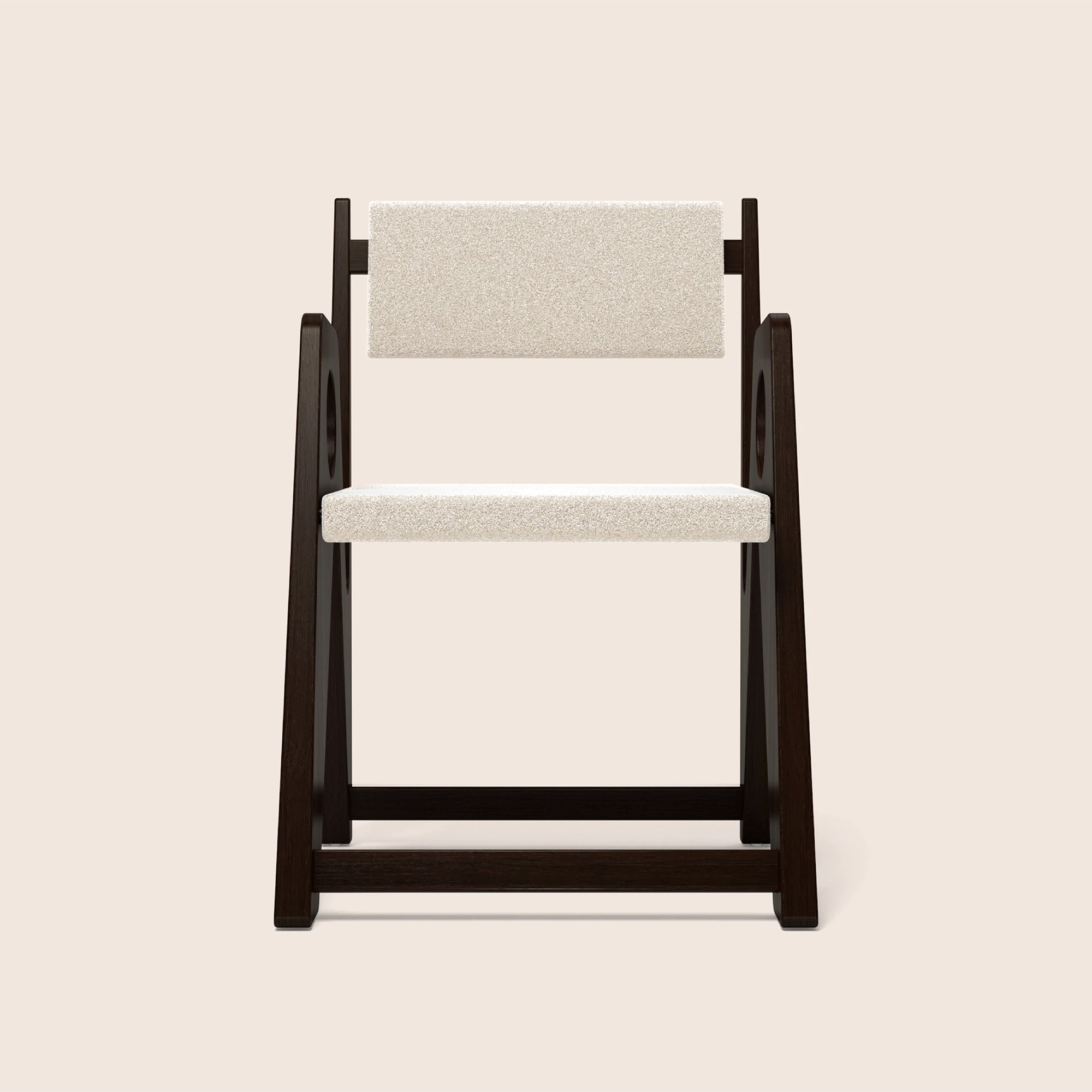 Luna Armchair is sculpted from rich wood and finished in fine upholstery. It balances geometry with gentle curves, precise joinery refined with an artisanal finish.