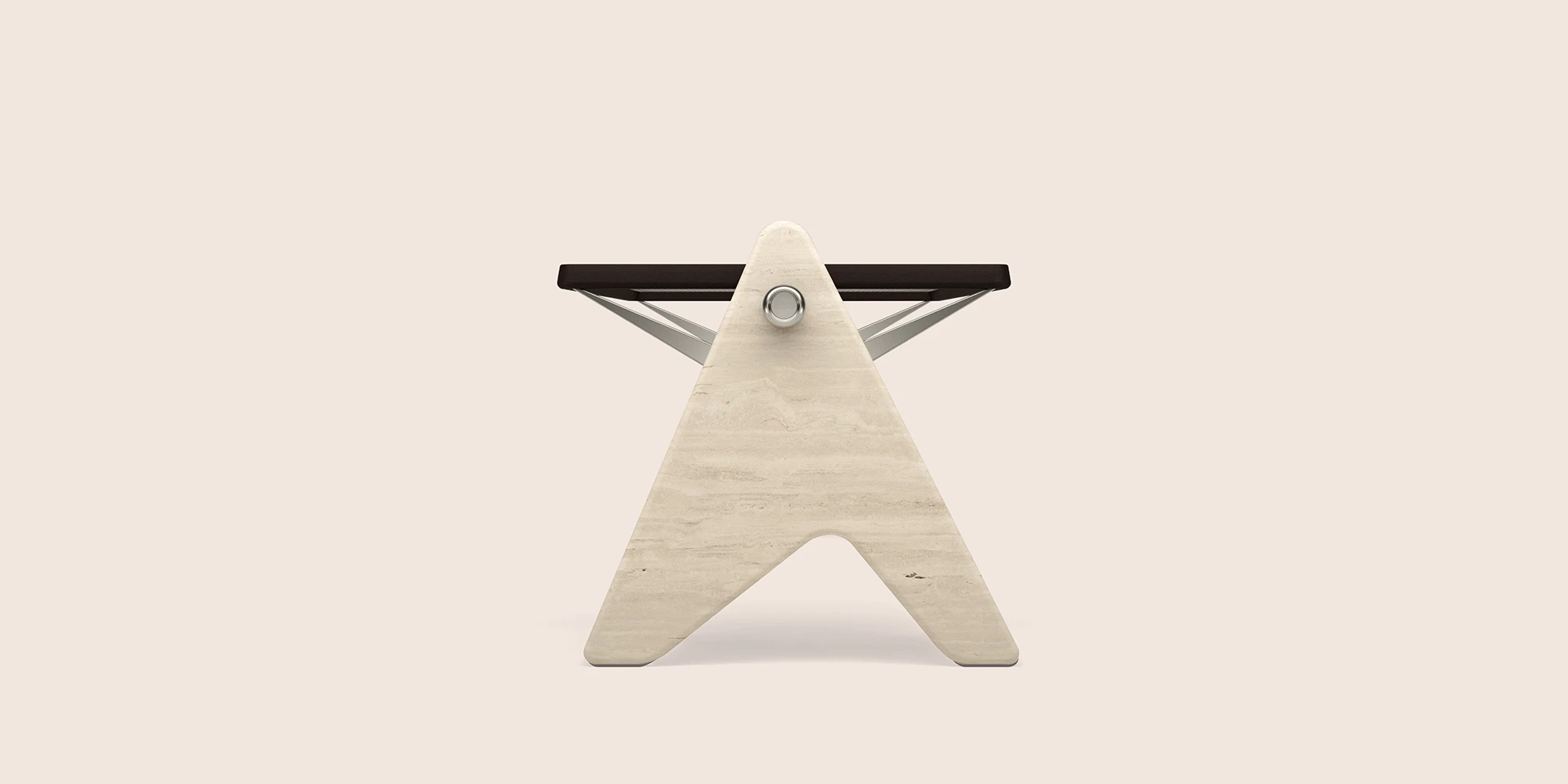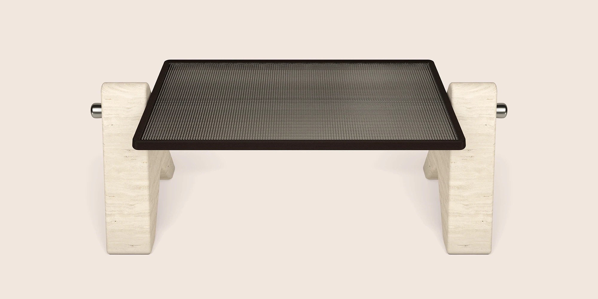 This desk was conceived in the final hours of the day, when attention sharpens and only what is essential remains. Its form is defined by a balance between weight and suspension: two monumental marble legs anchor the piece, while a hand-made glass surface, patterned in a subtle square grid, rests lightly within a wenge frame. An underlying aluminum structure supports it almost invisibly, giving the impression of a surface held in air. The desk emerges from the tension between heaviness and lightness—an object shaped for focus, clarity, and quiet persistence.